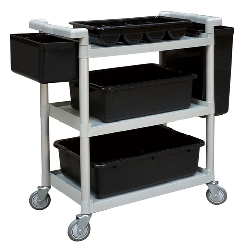 小型ユーティリティカートサービスカート3棚グレーPPプラスチック食堂レストランサービストロリー